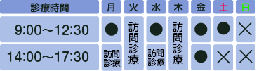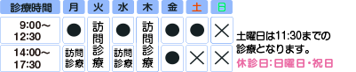 休診日:日曜・祝日 ※土曜日の診療は11:30まで
